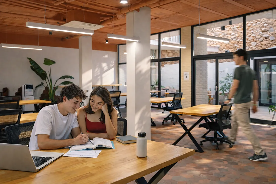 Te ayudamos a prepararte para tu futuro profesional con un ambiente ordenado, tu escritorio privado y un coworking para trabajo en grupo o individual con terraza contigua para que tus horas de estudio rindan al máximo.