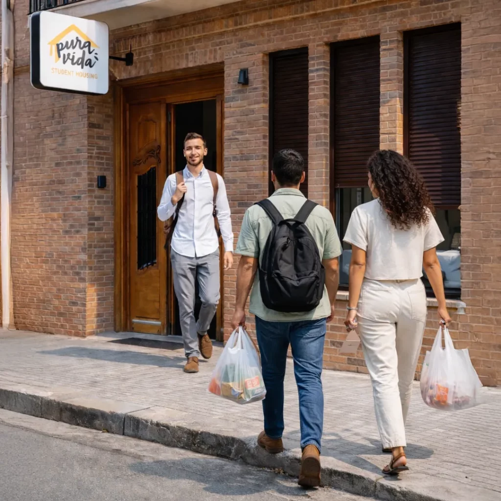 Buscar alojamiento para estudiantes y encargarse de toda la logística, mantener el foco mientras todo es nuevo y hacer nuevas amistades. Entendemos el reto y el regalo que significa esta etapa y queremos crear el espacio para que cada estudiante pueda aprovecharla al máximo. Estar disponibles en todo momento y a la vez fomentar la libertad e independencia.